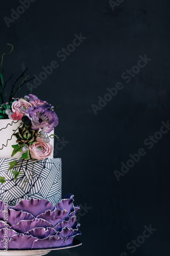 Fresh Flowers Cake For Birthday Full Of Flowers In Green And Purple