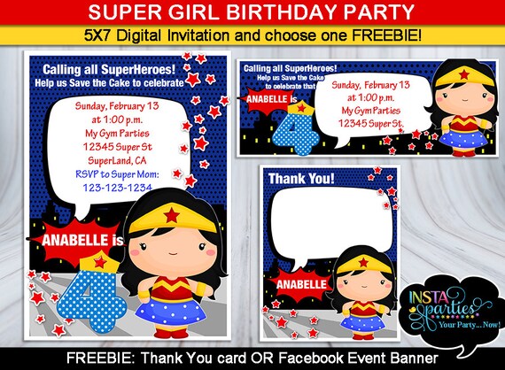 Wonder Woman Invitations Superhero Invitation Girl Invites Etsy