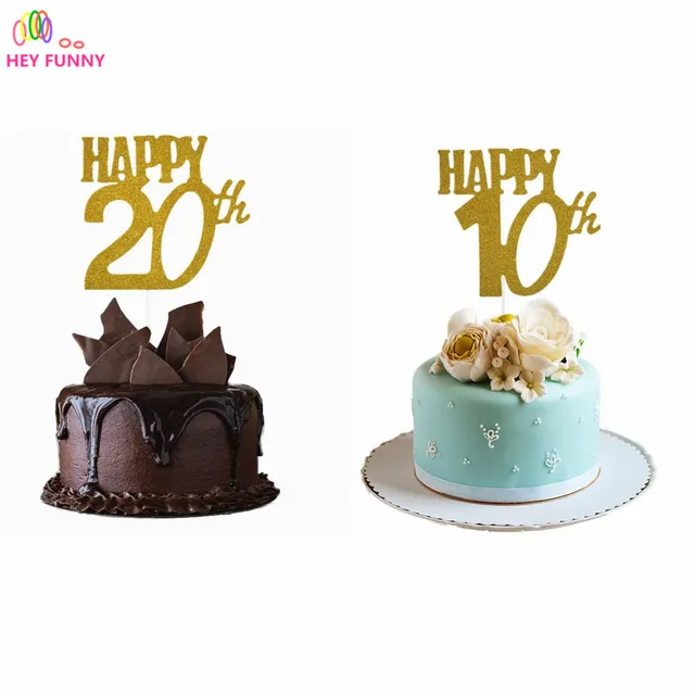 1pc Gold Happy10th 20th Years Birthday Cake Toppers Party Decor Baby