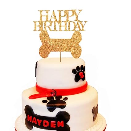 Amazon Com Jevenis Glitter Dog Birthday Cake Topper Dog Bone Cake