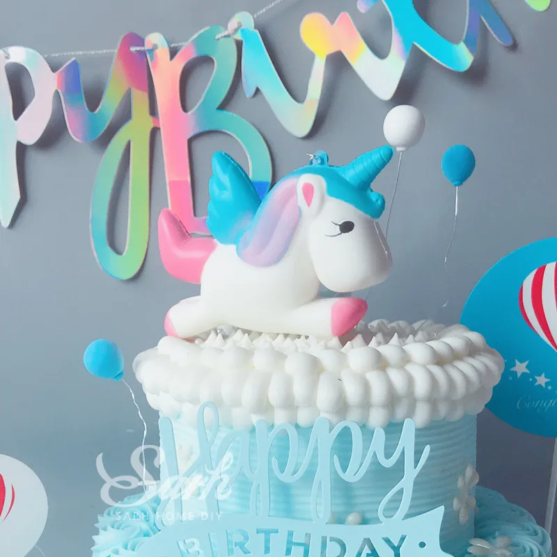 Blue Happy Birthday Cake Topper White Blue Pink Soft Unicorn