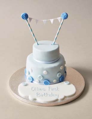 Personalised Button Bunting Cake In Blue White Serves 20 M S