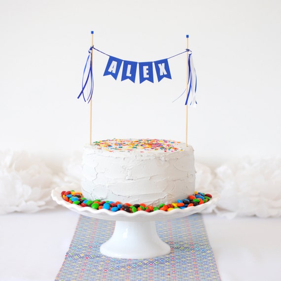 Blue Personalized Cake Bunting Custom Name Cake Topper Etsy