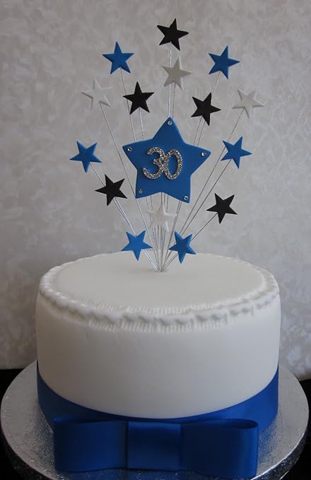 30th Birthday Cake Topper Blue Black And White Stars Suitable For A