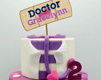 Printable doc mcstuffins cake topper doc mcstuffins centerpiece doc mcstuffins birthday party decorations diy doc mcstuffins supplies garibaldico 5 out of 5 stars 942 499 free shipping favorite. A doc mcstuffins cake is the last piece of the puzzle in your childs themed birthday party. Doc mcstuffins cake doc mcstuffins birthday party dr mcstuffin birthday parties birthday cakes birthday celebrations birthday board 3rd birthday birthday ideas forward doc mcstuffins cake 8 and 6 inch rounds decorated in mmf.