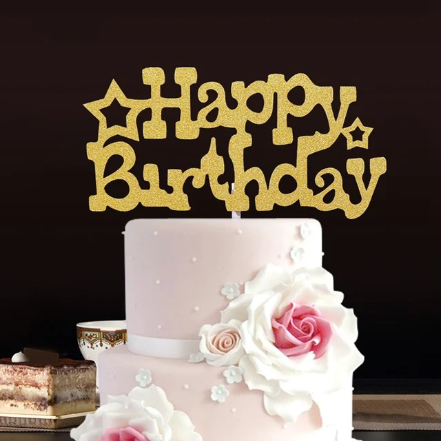 Happy Birthday Cake Topper Glitter Letters Shining Flags Banner