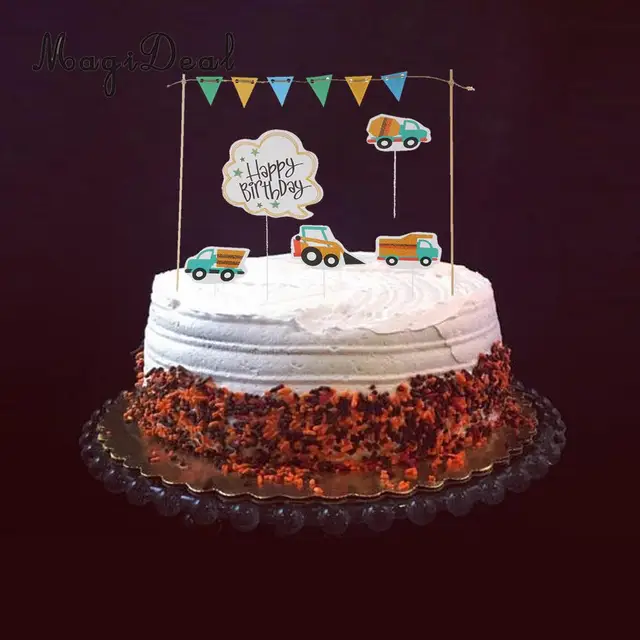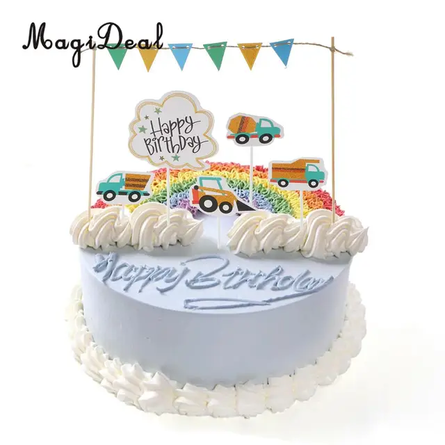 Happy Birthday Cake Topper Banner Vehicles Truck Digger Cake Picks