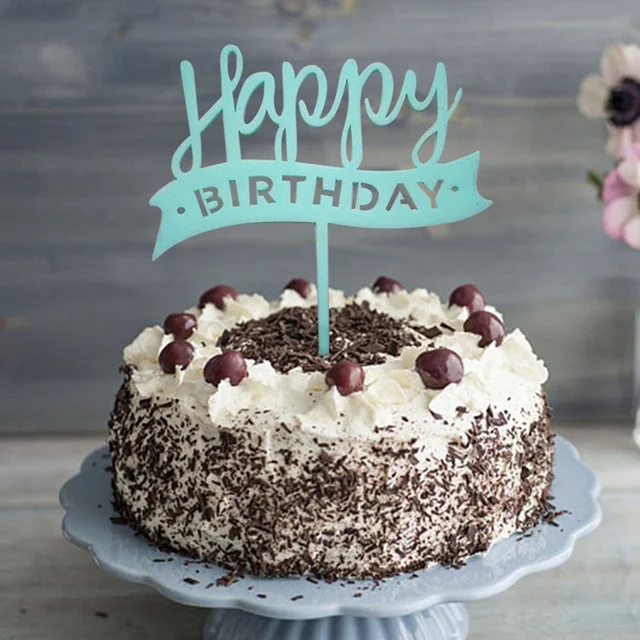 Grosshandel Blaue Rosa Acryl Gestreifte Banner Happy Birthday Cake