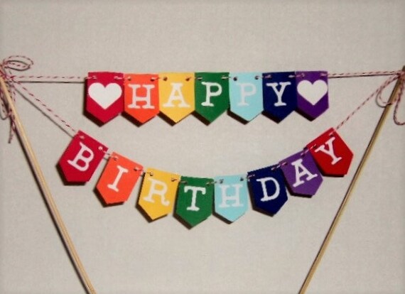 Birthday Cake Banner Birthday Cake Topper Happy Birthday Etsy