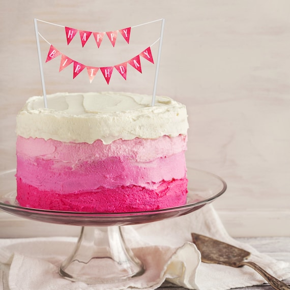 Birthday Cake Banner Pink Ombre Happy Birthday Cake Bunting