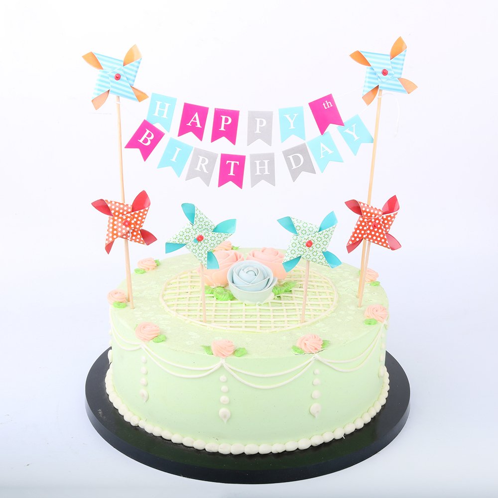 Lxzs Bh Happy Birthday Cake Topper Banner With Small Windmill Cake