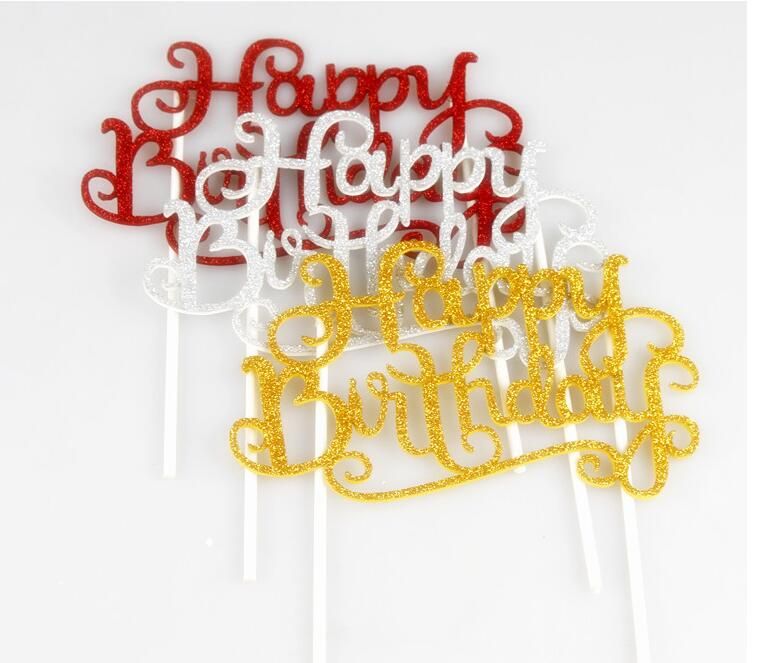2019 Glitter Happy Birthday Flag Cake Topper Decoration Party Favors