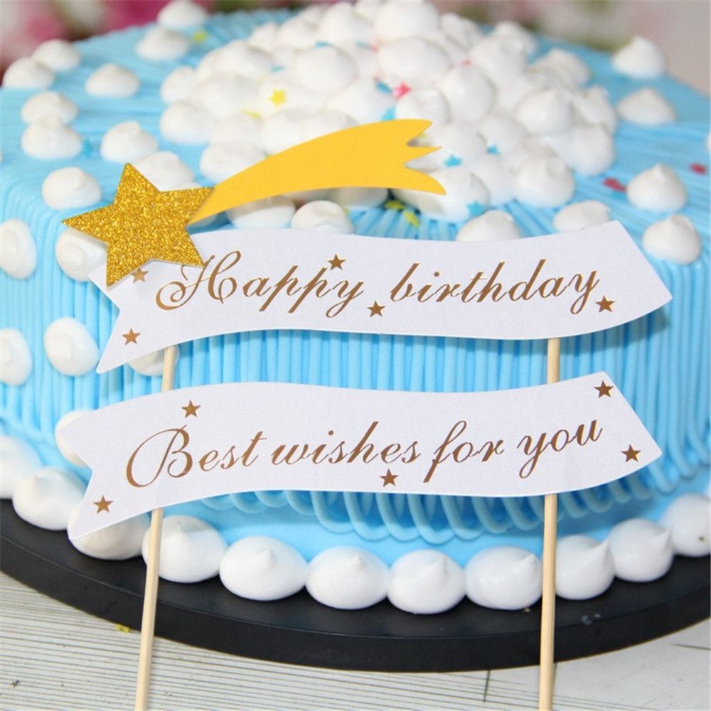 Amazon Com Lxzs Bh Lveud Happy Birthday Cake Topper Banner With