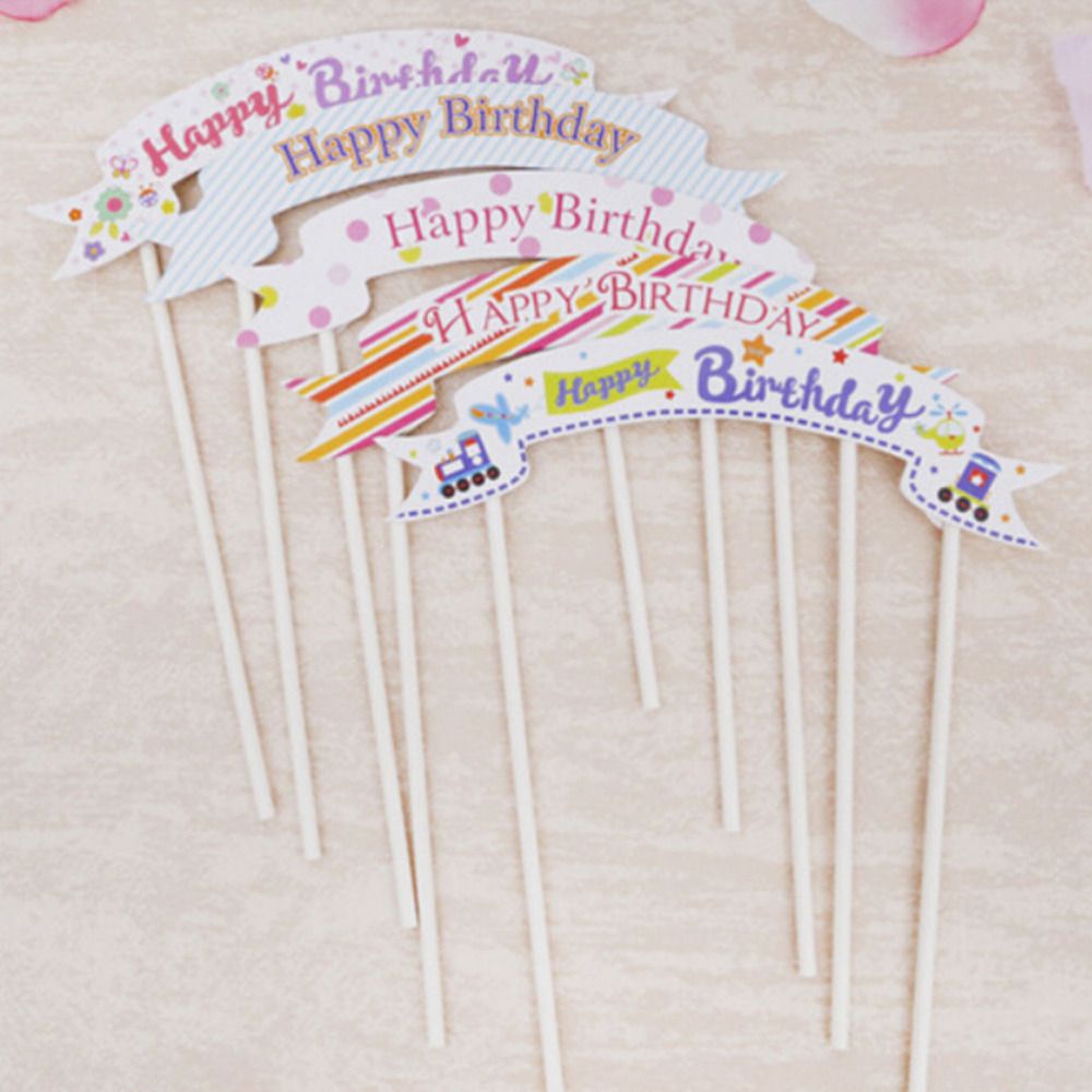 10 Sets Happy Birthday Cake Topper Flag Bunting Banner Party Cake