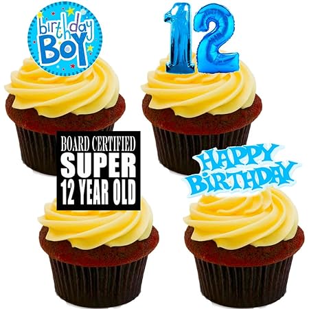 Made4you 12th Birthday Boy Edible Cupcake Toppers Stand Up Wafer