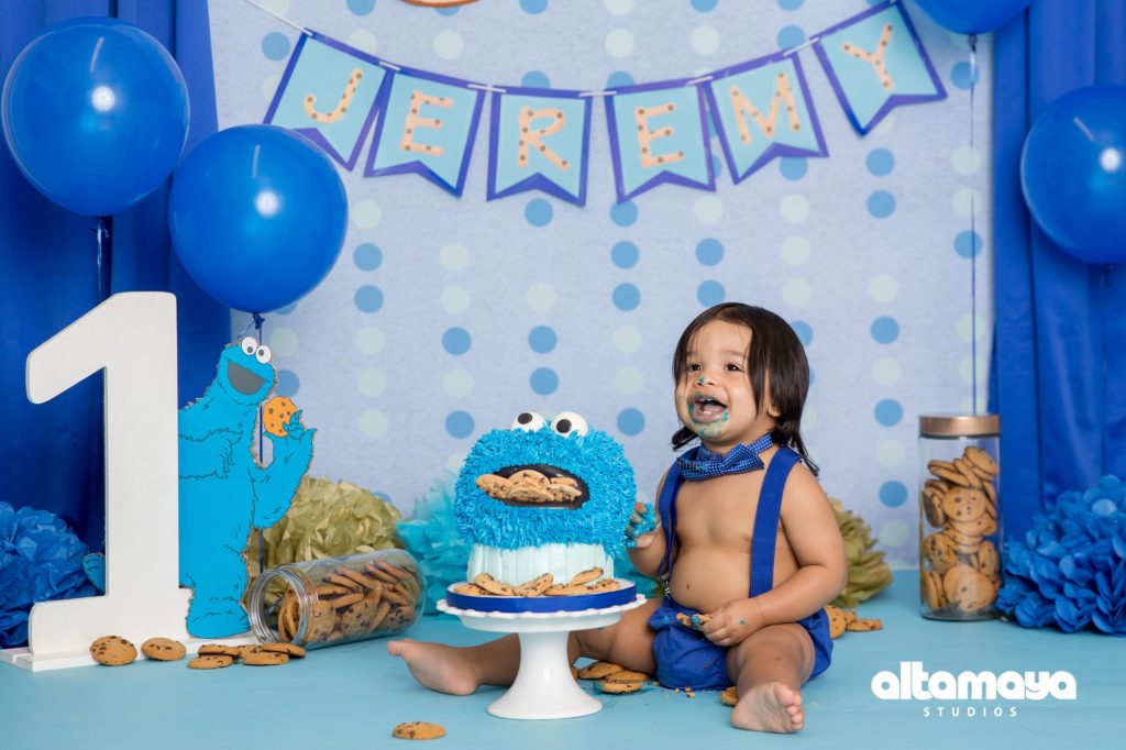 Cookie Monster Smash Cake Birthday Baby Boy Studio Photo Session