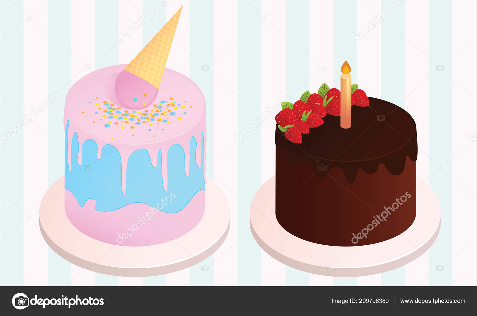 Set Birthday Cakes Birthday Party Elements Vector Illustration