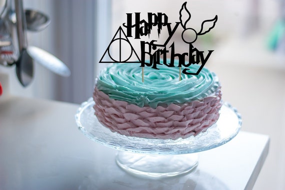 Happy Birthday Harry Potter Cake Topper Golden Snitch Deathly Etsy
