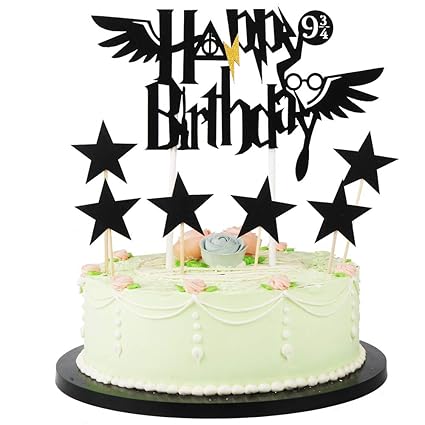 Amazon Com Black Harry Inspired Happy Birthday Cake Topper And 8