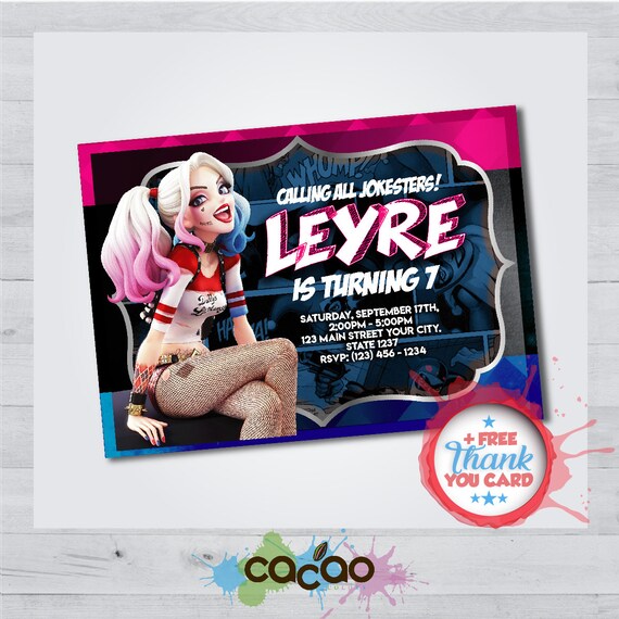 Harley Quinn Invitation Card Suicide Squad Invite Etsy
