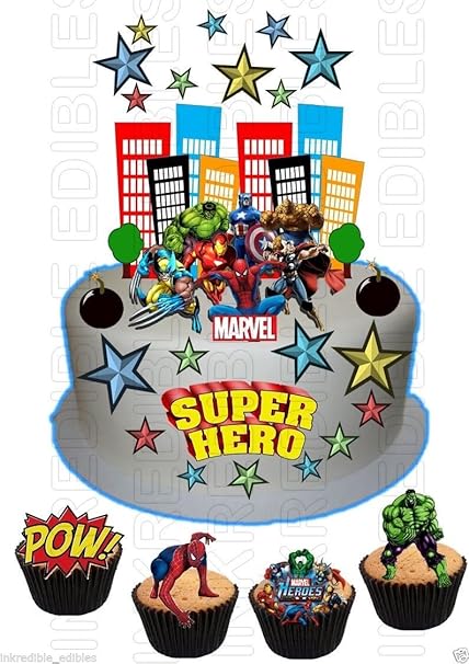 Edible Superhero Hulk Spiderman Iron Man Wafer Card Scene Birthday