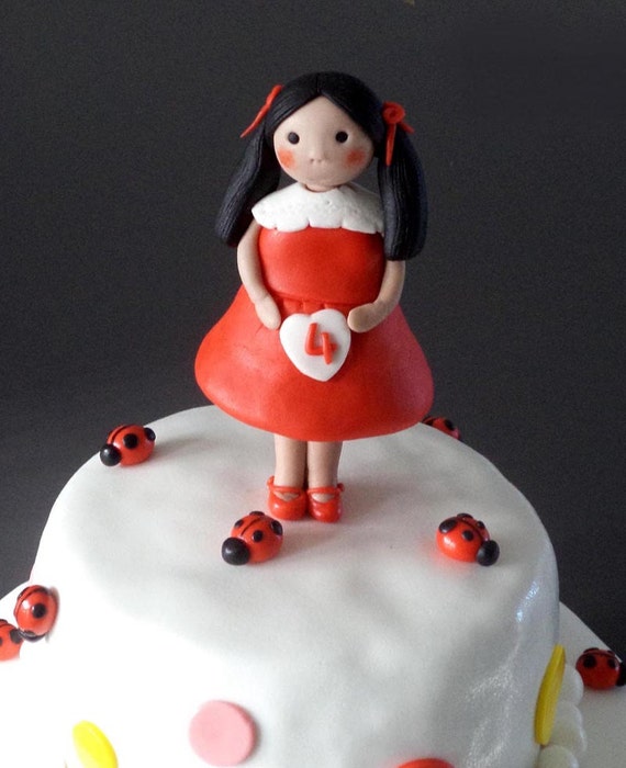 Little Girl In Red Fondant Edible Birthday Cake Topper Lady Etsy