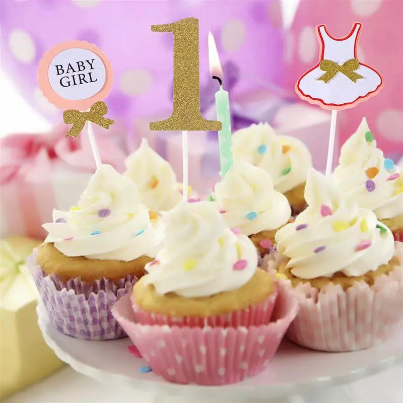 3 Pcs Cake Topper Flag Baby Boy Girl 1 Year Old Age Happy Birthday
