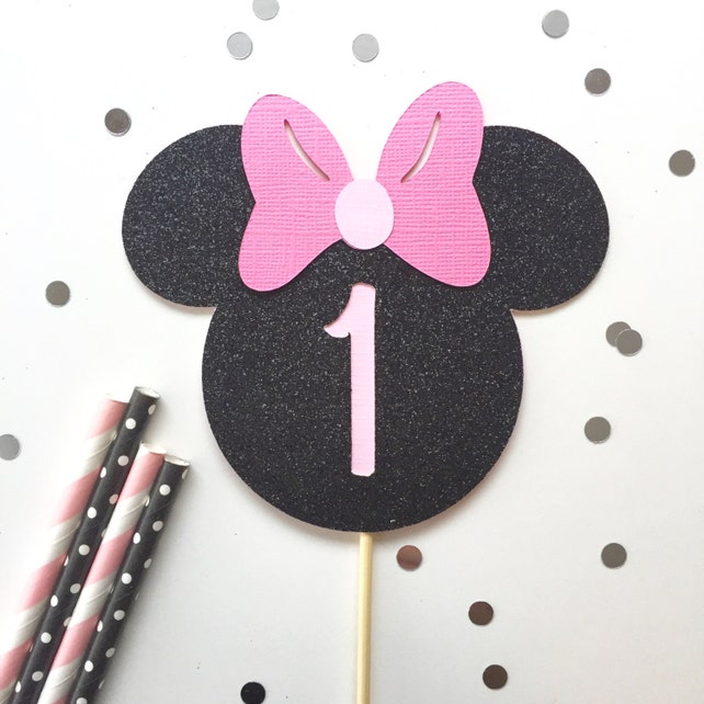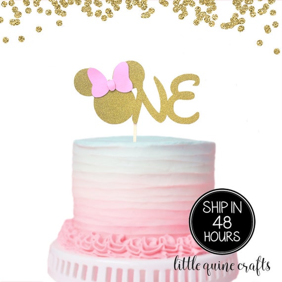 1 Pc One Minnie Mouse Head Pink Gold Glitter Cake Topper For Etsy