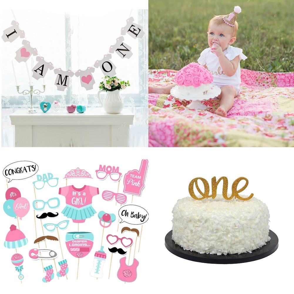 Ginger Ray Baby Girl 1st Birthday Cake Smash Kit 15pc Party City