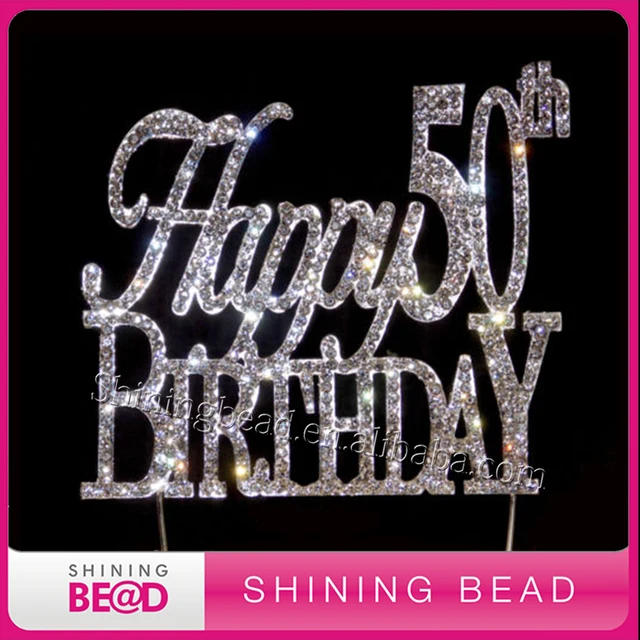 Happy 50th Birthday Rhinestone Crystal Cake Topper Partyplanhq