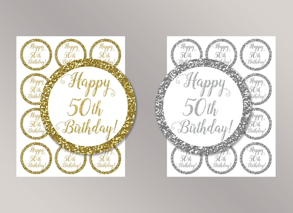 Happy 50th Birthday Cupcake Toppers Happy Birthday Favor Etsy