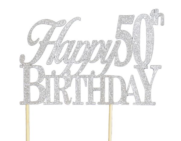 Amazon Com Happy 50th Cake Topper Glitter Silver 50th Birthday