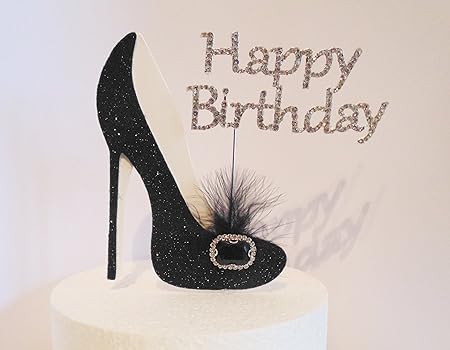 Happy Birthday Cake Decoration Black Sparkle And White Shoe With