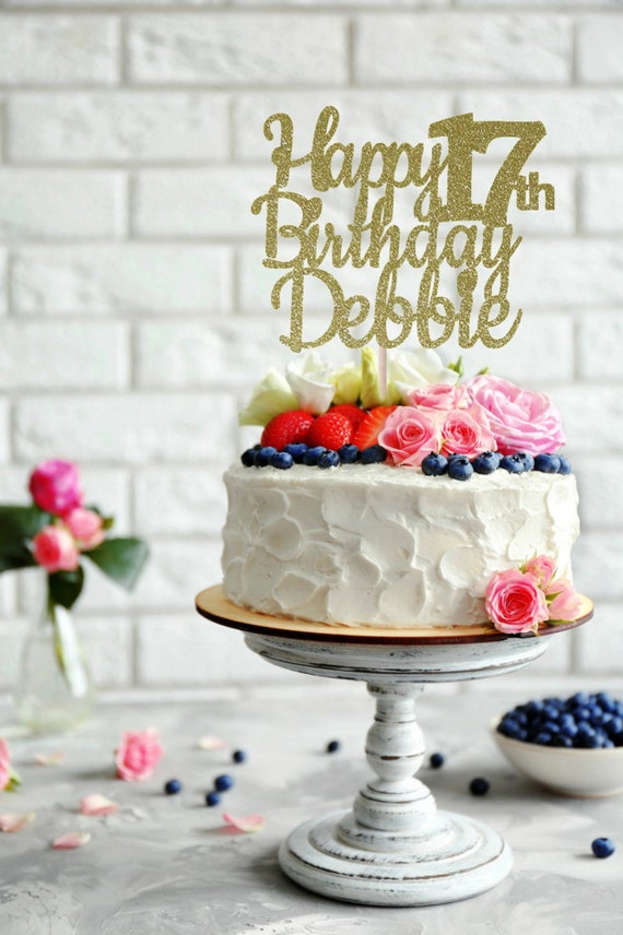 Any Name Happy 17th Birthday Cake Topper 17th Birthday Etsy