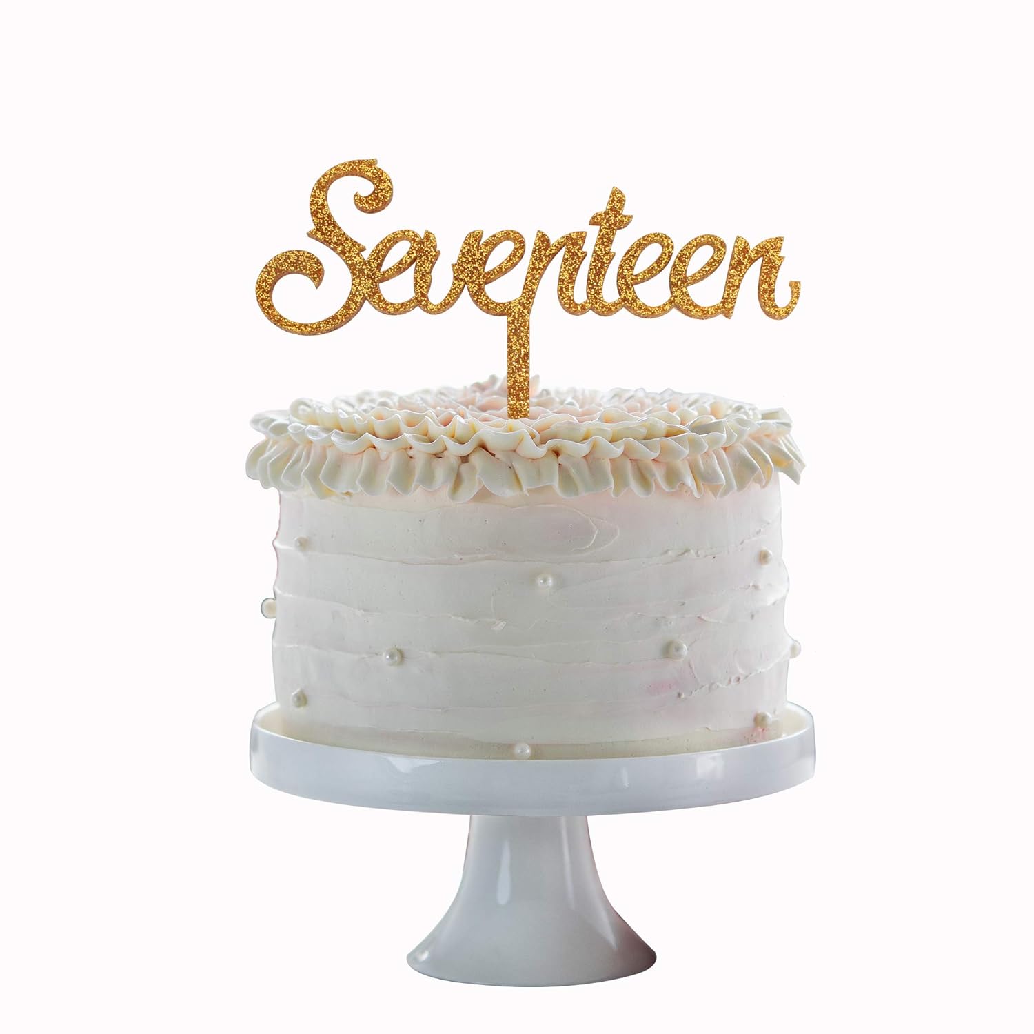 Amazon Com Seventeen Happy Birthday Cake Topper Gold Glitter
