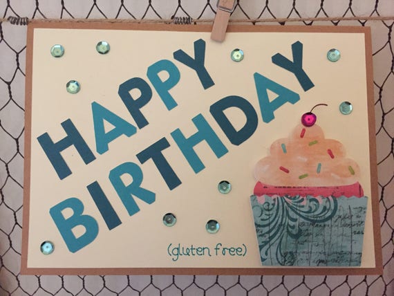 Birthday Happy Birthday Gluten Free Cupcake Homemade Card Etsy